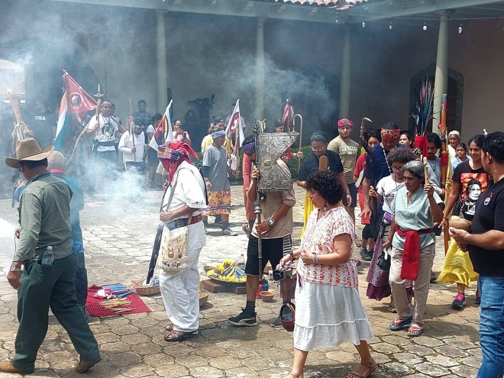Los pueblos –que llegaron caminando al país– se congregaron en Izalco, uno de los territorios con mayor población indígena de E Salvador que aún conserva el náhuat o tradiciones de cultivos ancestrales.