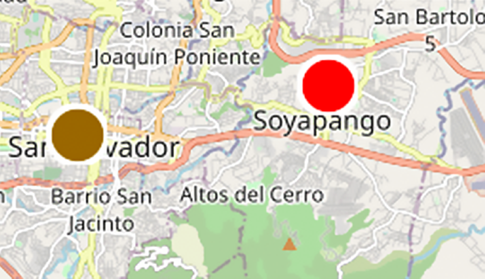 Puntos de alerta de la calidad del aire en San Salvador. MARN