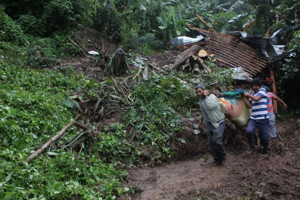 De entre el lodo, piedras y trozos de árboles fueron rescatados los cuerpos de la familia Mejía Amaya del derrumbe, en el caserío La Pedrera, cantón Los Almendros, Huizúcar, La Libertad, ocurrido la madrugada de este jueves, tras las constantes lluvias que caen desde ayer.