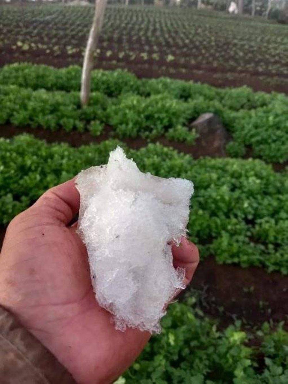 “Nuestro observador meteorológico de la estación Las Pilas, en Chalatenango, nos reporta escarcha en los cultivos, ubicados arriba de los 2600 metros sobre el nivel del mar, producto de la baja temperatura en la zona, que alcanzó en algún momento los 0° C”.