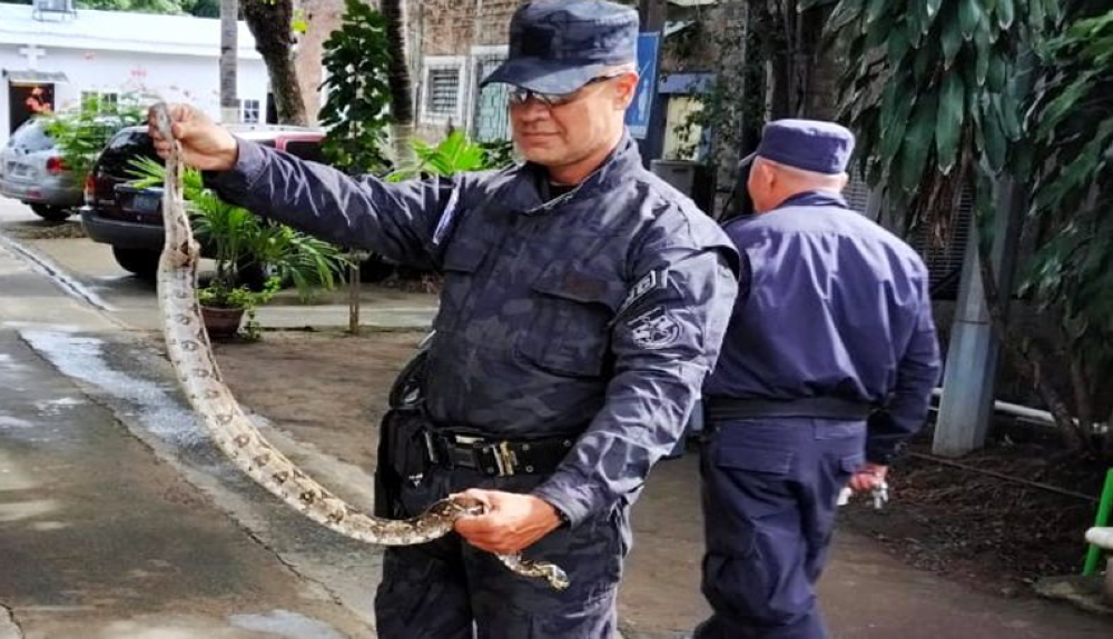 Un poblador de la colonia Espiga de Oro, en San Vicente, también alertó a las autoridades sobre la presencia de una boa constrictor (mazacuata), la cual fue atrapada por agentes de la PNC y posteriormente liberada en un área protegida para su desarrollo.