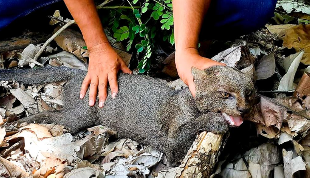Agentes de la Policía Nacional Civil (PNC) reportaron, este viernes, el rescate de un ejemplar hembra de Gato Zonto, en la carretera que conduce hacia el municipio de Chilanga, en Morazán.