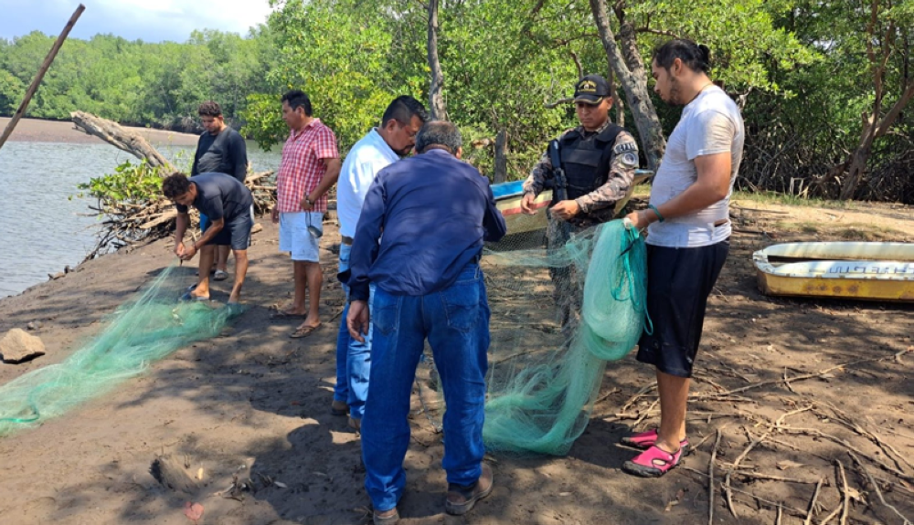 Efectivos de la Fuerza Naval y funcionarios del Centro de Desarrollo de la Pesca y la Acuicultura (CENDEPESCA) retiraron este miércoles una red de pesca que estaba instalada de forma ilegal en la bocana San Juan, en playa Costa Azul en Acajutla, Sonsonate.