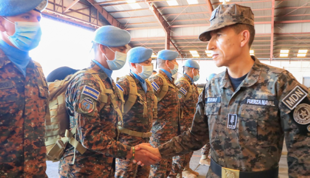 El ministro de Defensa, René Francis Merino Monroy, recibió este sábado a un contingente de 52 efectivos salvadoreños, que regresan al país tras completar operaciones de mantenimiento de paz como parte de la Fuerza Interina de las Naciones Unidas en el Líbano (FINUL).