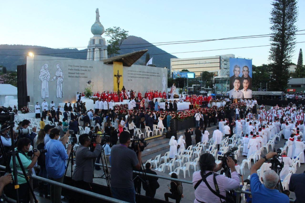 Con una carta en latín, leída por el cardenal Rosa Chávez, enviada por el papa Francisco, la Iglesia Católica declaró beatos a los salvadoreños, Rutilio Grande García, Manuel Solórzano, Nelson Lemus y el sacerdote italiano radicado en El Salvador, Cosme Spessotto. La carta fue leída en castellano, por el sacerdote jesuita, Rodolfo Cardenal.