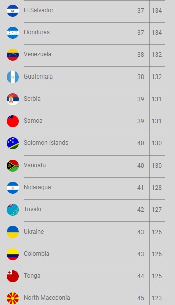 De esta manera El Salvador se coloca arriba de países como Honduras, Guatemala, Venezuela y Colombia, entre otros.
