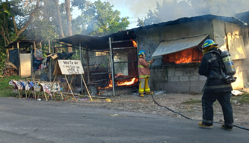 Una cohetería de pirotécnicos artesanales fue consumida por el fuego, la mañana de este sábado, en la carretera Panorámica entre las poblaciones de Cojutepeque y San Ramón en Cuscatlán.