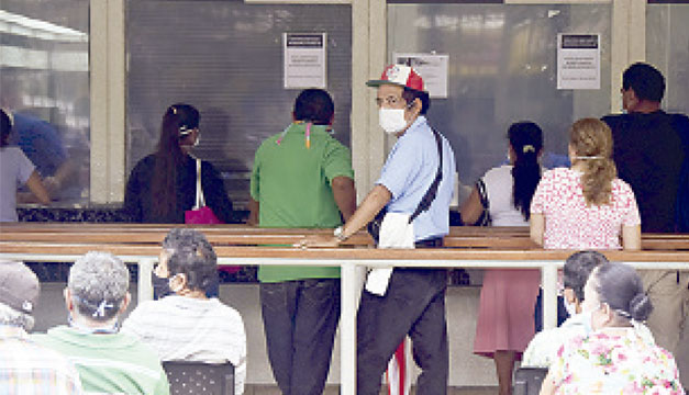 Las largas filas de personas para cobrar el subsidio de $300 prometido por el Gobierno a las familias salvadoreñas para enfrentar la crisis económica causada por el coronavirus, se mantuvieron durante el fin de semana a las afueras de los bancos de los municipios de San Salvador y Soyapango.