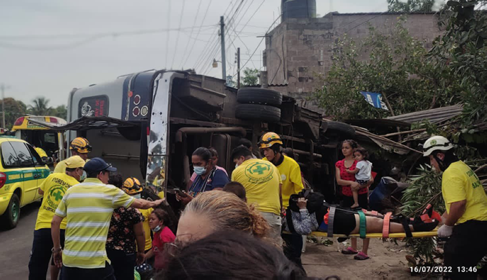 #LoÚltimoSV | Fuerte accidente en carretera hacia Quezaltepeque, un microbús ha volcado y dejado varios heridos