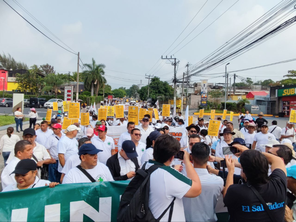 Integrantes de la Unidad Sindical Salvadoreña (USS) marcharon esta mañana desde la Plaza Torogoz hacia la Plaza México, en San Salvador, con una carta que fue entregada al ministro de Trabajo, Rolando Castro, para que esta sea presentada al presidente de la República, Nayib Bukele.