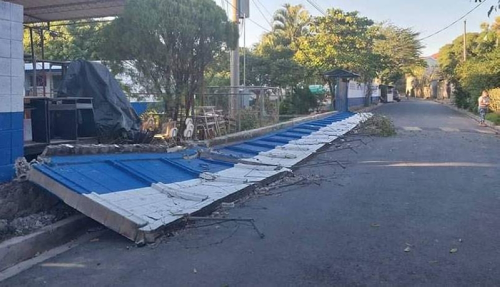 Paredes agrietadas y un muro caído fueron otros de los daños ocasionados por el sismo, según detalló la diputada de Nuevas Ideas, Norma Lobo en su cuenta de Twitter.