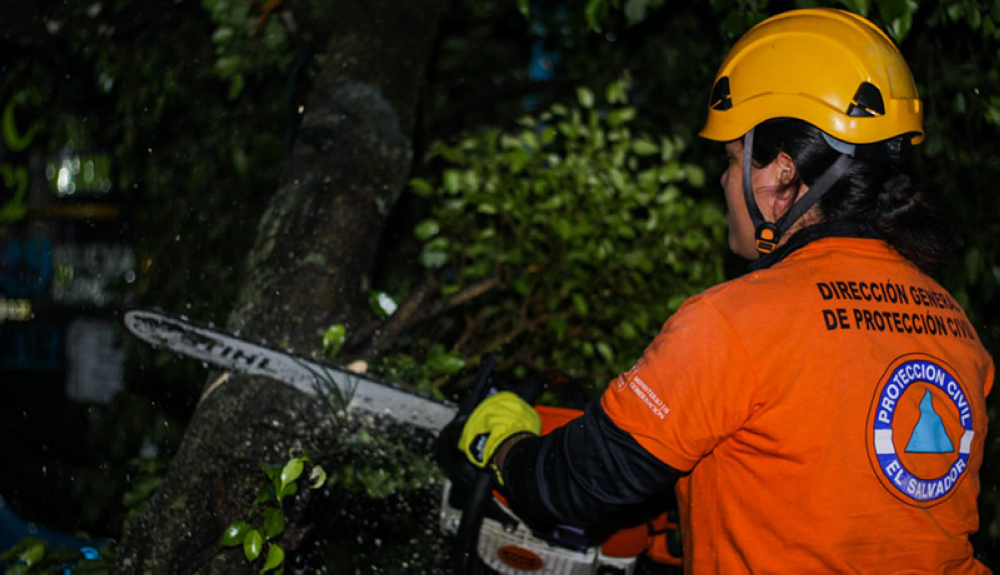 Por su parte el Cuerpo de Bomberos reportó la caída de un árbol sobre la carretera Litoral, inmediaciones del redondel bypass del desvío a Santa Elena, Usulután. Aquí el incidente generó la caída de cables de energía eléctrica.
