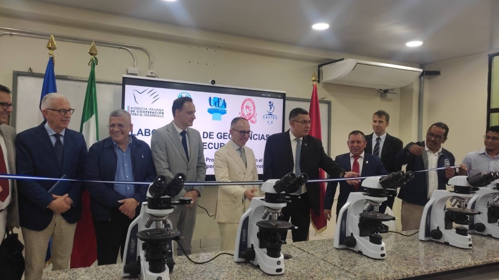Durante la inauguración, el embajador de Italia en El Salvador, Paolo Emanuele Rozo Sordini, subrayó que el laboratorio es un resultado tangible de esfuerzos, el cual debe ser disfrutado y utilizado de la mejor manera por los estudiantes de Ingeniería Geológica al utilizar instrumentos de primera generación y de máxima revolución tecnológica. También expresó que con este proyecto se espera contribuir a fortalecer los lazos entre ambos gobiernos y los institutos universitarios de enseñanza y de formación.