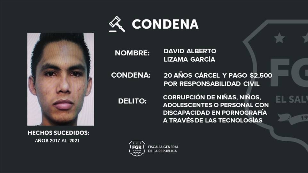 El Tribunal Quinto de Sentencia de San Salvador condenó a David Alberto Lizama García a 20 años de prisión por abusar sexualmente de una menor de edad.