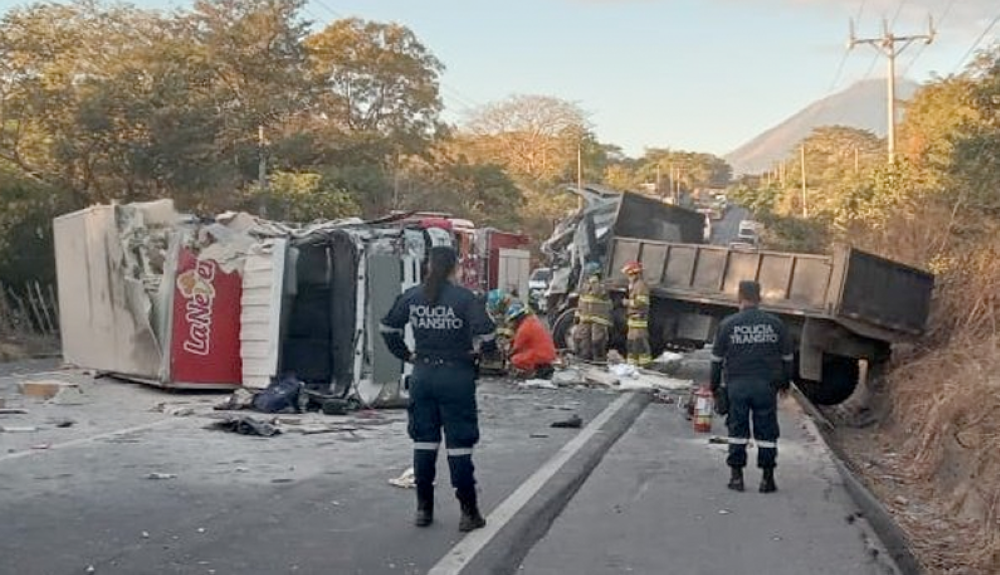 Un hombre murió y dos más resultaron gravemente lesionados la mañana de este sábado, luego que dos camiones protagonizaran un aparatoso choque en el km 145 de la Ruta Militar entre San Francisco Gotera y San Miguel.