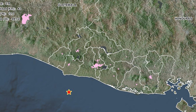 La cartera de Estado precisó que el temblor tuvo su epicentro a 43 kilómetros de profundidad, frente a la playa Mizata en aguas del Océano Pacífico.