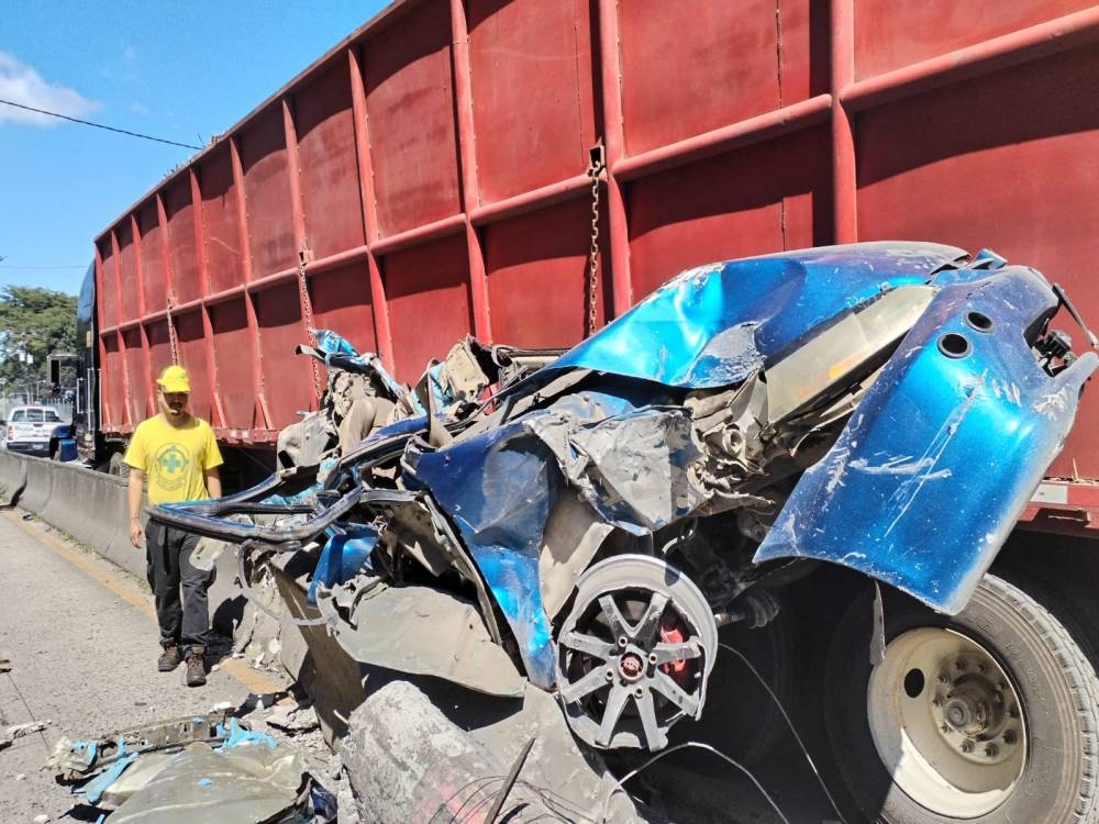 Según el conductor del vehículo sedan, tuvieron desperfectos en el carro y se bajaron a poner conos, en ese momento, la excesiva velocidad en la que se conducía la rastra impidió que se detuviera e impactó contra el carro estacionado. El vehículo quedó comprimido entre la rastra y el separador de la calle.