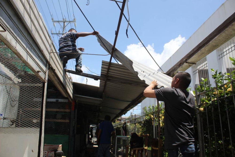 Dos hermanos Laínez retiran láminas del puesto de la zona de la galera, en la 6a calle Poniente, en San Salvador; dicen que hoy se vencieron las 72 horas que la alcaldía les dio para retirarse. /Emerson Del Cid.