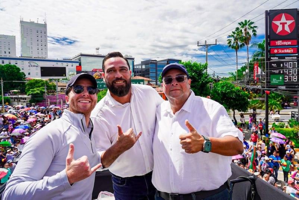 El alcalde de Tegucigalpa, Honduras, Jorge Alejandro Aldana Bardales, y el alcalde de Panamá, Mayer Mizrachi, se encuentran de visita en El Salvador y este jueves 1 de agosto aprovecharon para compartir unos momentos en el Conga Bus que encabezó el Desfile del Correo, que marca el inicio de las fiestas patronales del distrito de San Salvador, en el municipio de San Salvador Centro.