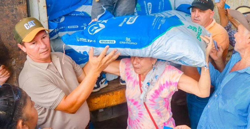 Según las fotografías compartidas por la alcaldía, los interesados en beneficiarse con un saco de fertilizante debían presentar documentos de identificación para ser anotados en un listado.