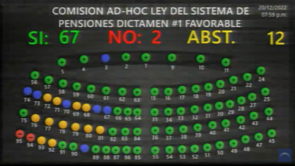 Con 67 votos a favor, la Asamblea Legislativa aprobó hoy la nueva Ley Integral del Sistema de Pensiones, cuya vigencia iniciará ocho días después de su publicación en el Diario Oficial y que deroga la actual Ley del Sistema de Ahorro para Pensiones aprobada en 1996.