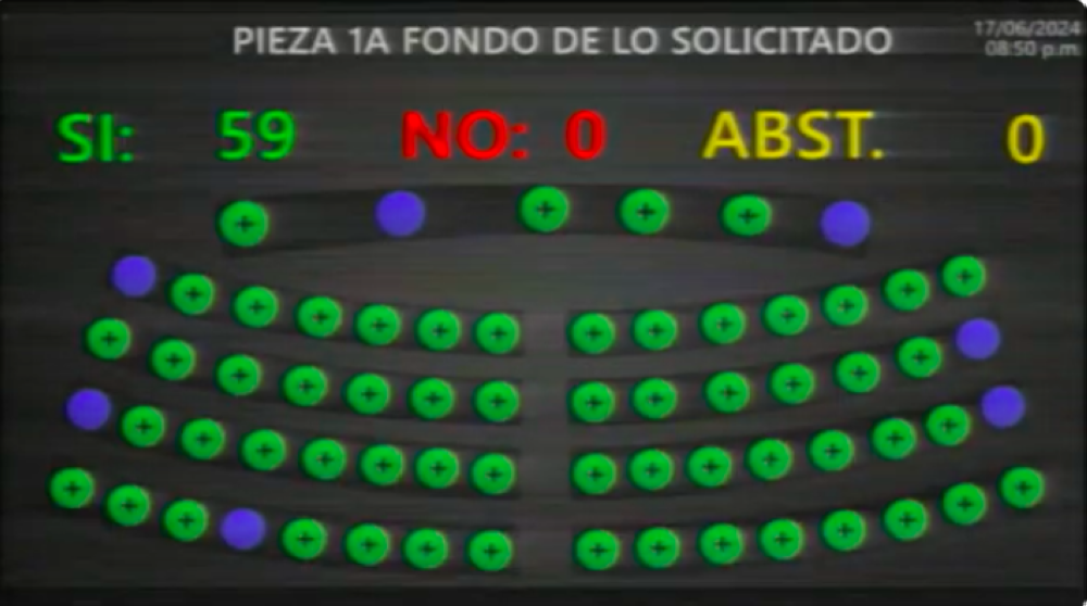 El decreto de “Disposiciones especiales concediendo licencia remunerada a los empleados de la administración pública y municipal, y a los del sector privado y docente” fue aprobado con 59 votos. Los tres diputados de oposición, de Arena y Vamos, votaron a favor.