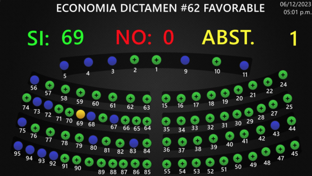 La ley recibió 69 votos, incluidos 7 de Arena, 2 de Gana, 54 de Nuevas Ideas, 2 del PCN, 1 del PDC y 3 sin grupo. El partido Nuestro Tiempo se abstuvo, diputados de FMLN y Vamos no votaron.