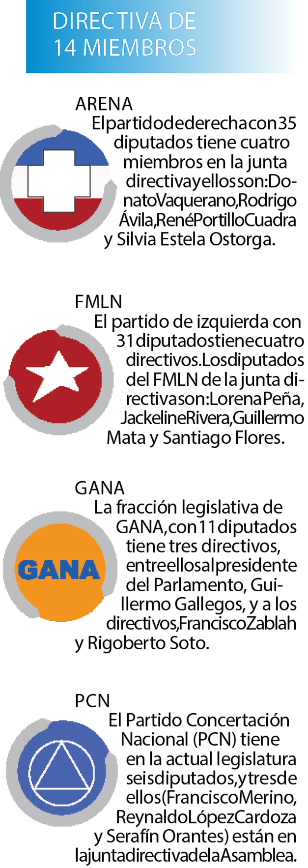 Por su parte, Santiago Flores, del FMLN, dijo que la fracción apoyaría el recorte de la cantidad de diputados de la directiva.
