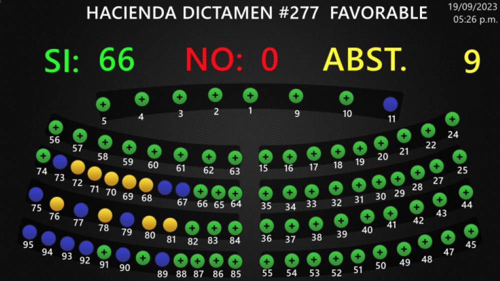 El dictamen favorable junto al decreto de la nueva ley fue aprobado con 66 votos de Nuevas Ideas, Gana, PCN, PDC y dos diputados que renunciaron de Arena. Nueve votaron “abstención”: Arena, Nuestro Tiempo y Vamos. El FMLN no emitió votos.