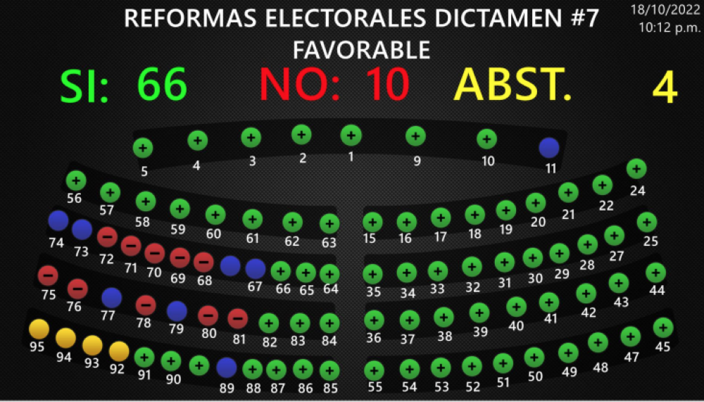 Hubo 10 votos en contra (Arena, Nuestro Tiempo y Vamos) y 4 abstenciones (FMLN).