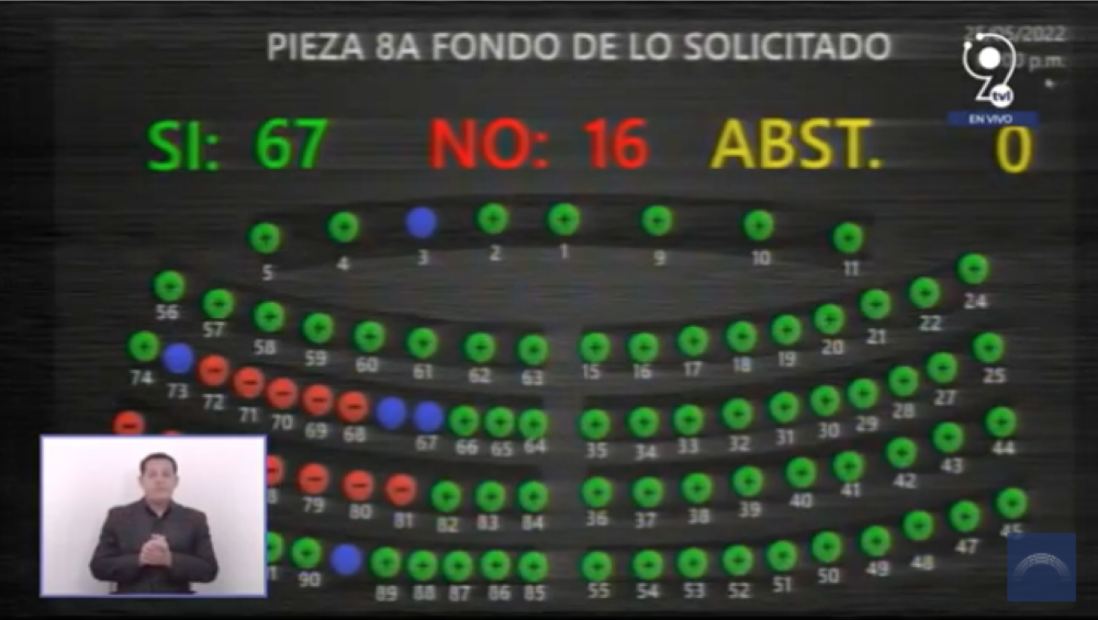 La ampliación fue solicitada este miércoles por tres funcionarios del Ejecutivo y Nuevas Ideas no dudó en darle el respaldo. La dispensa de trámites fue aprobada por 66 diputados de Nuevas Ideas, sus aliados y 3 diputados exareneros. Los diputados de Nuevos Tiempo y Vamos votaron en contra.