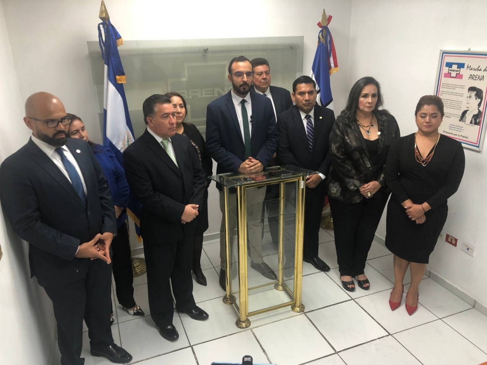 Arena también divulgó un comunicado de prensa, en el cual reclamó el desmontaje del Estado de Derecho en El Salvador y en donde aseguran que el país "vive uno de sus momentos más oscuros". El gobierno, asevera, controla ilegalmente la Fiscalía General de la República y el Organo Judicial.