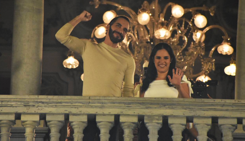“Sería la primera vez que en un país existe un partido único en un sistema plenamente democrático", dijo durante su discurso en el que era acompañado por la primera dama Gabriela de Bukele.