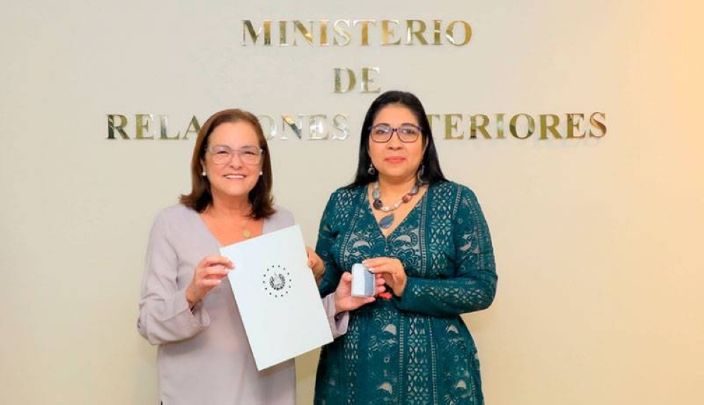 La canciller salvadoreña, Alexandra Hill Tinoco, entregó el martes a la presidenta del Tribunal Supremo Electoral (TSE), Dora Martínez de Barahona, información sobre la cantidad de salvadoreños que residen en el extranjero.