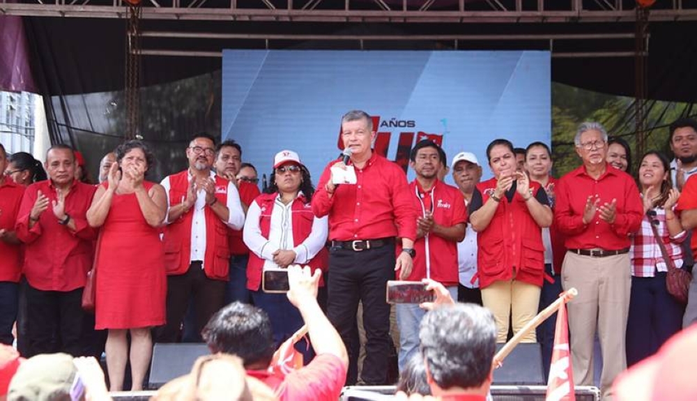 El Frente Farabundo Martí (FMLN) conmemoró este domingo sus 44 años de fundación. En medio de un positivismo, el secretario general del partido, Manuel “El Chino Flores”, dijo que el partido estaba resurgiendo.
