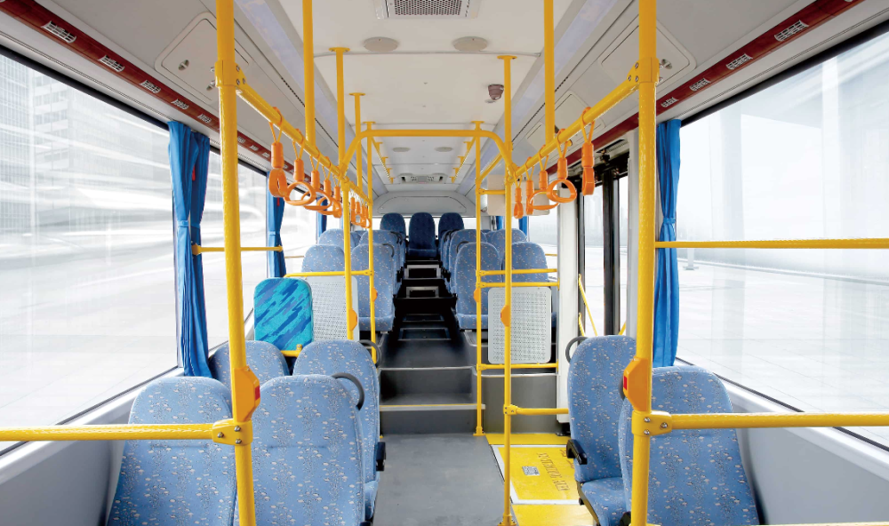 El interior de un bus de 12 metros de largo, modelo Yutong ZK6126HG según el sitio web de la fábrica.