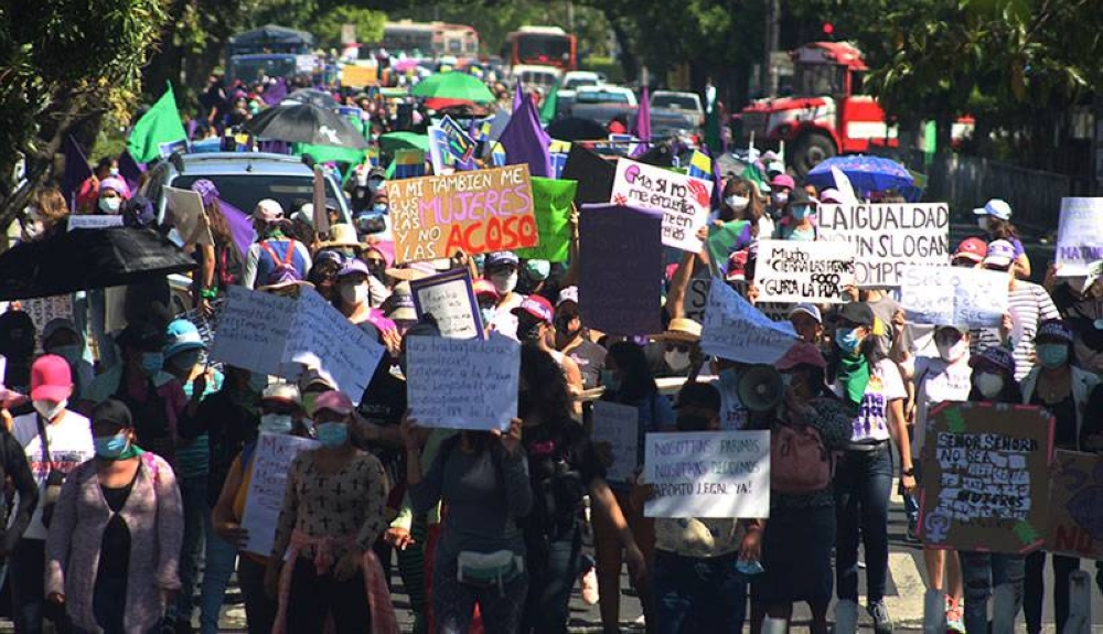 Durante la marcha conmemorativa por el Día Internacional de la Mujer, diferentes organizaciones feministas defendieron la Ley Especial Integral para una Vida Libre de Violencia para la Mujer (LEIV) y rechazaron la postura de la diputada de Nuevas Ideas, Marcela Pineda, quien dijo que la ley “no sirve”.