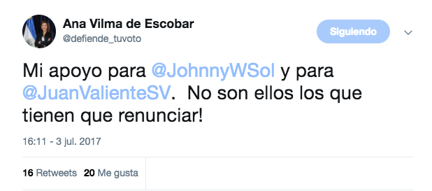 Si estuviéramos respondiendo a intereses personales, estaríamos garantizando permanecer en la Asamblea y probablemente negociando tener vehículos y celulares y más dinero para controlar persona” Juan Valiente Diputado ARENA“Es una renuncia a una candidatura con un partido político a futuro, el compromiso de seguir defendiendo los intereses de todos los salvadoreños sigue vigente”, dijo Wright.