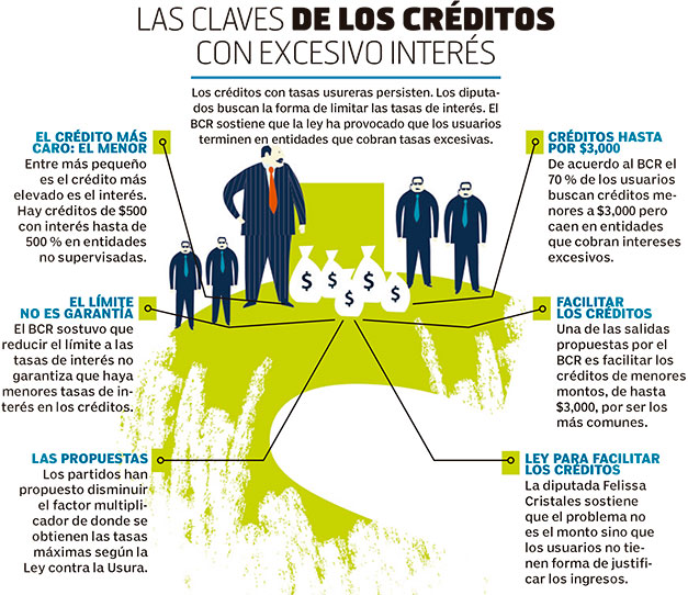 La Comisión Financiera de la Asamblea Legislativa estudia iniciativas para aumentar el factor multiplicador utilizado para establecer los límites a las tasas de interés de los diferentes créditos, así como una “Ley para facilitar crédito al sector productivo”.