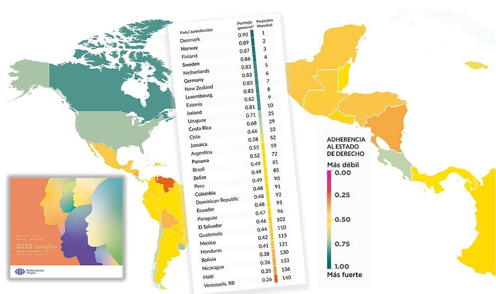El Salvador empeoró su calificación en la imposición de límites al poder y cumplimiento de derechos fundamentales, y mejoró en seguridad, de acuerdo al Índice del Estado de Derecho 2022 del World Justice Project (WJP).