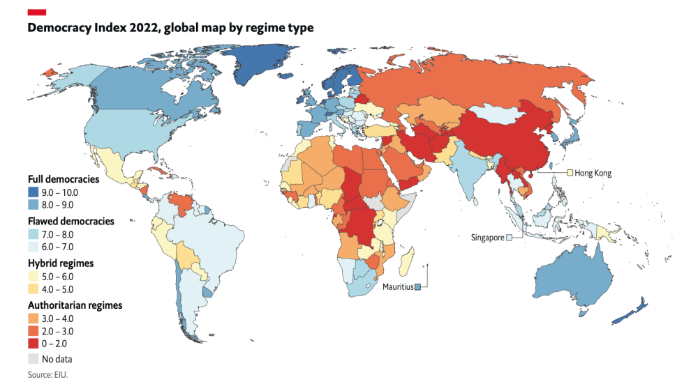 Índice de Democracia 2022 en Centroamérica según la EIU