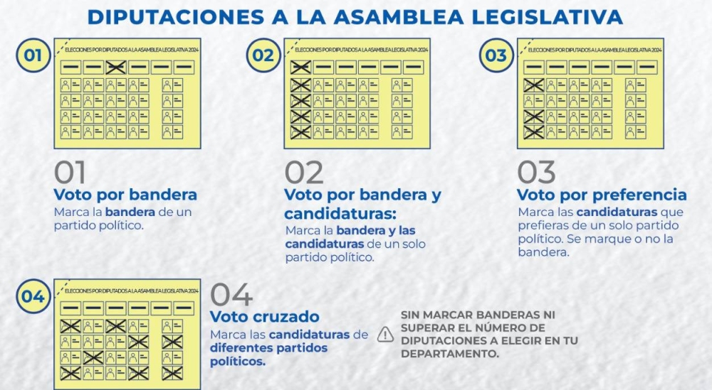 El domingo 4 de febrero, los salvadoreños tienen la opción de votar cruzado, por bandera o por algunos o todos los rostros de uno o varios partidos políticos, al participar en la elección de diputados de la Asamblea Legislativa.