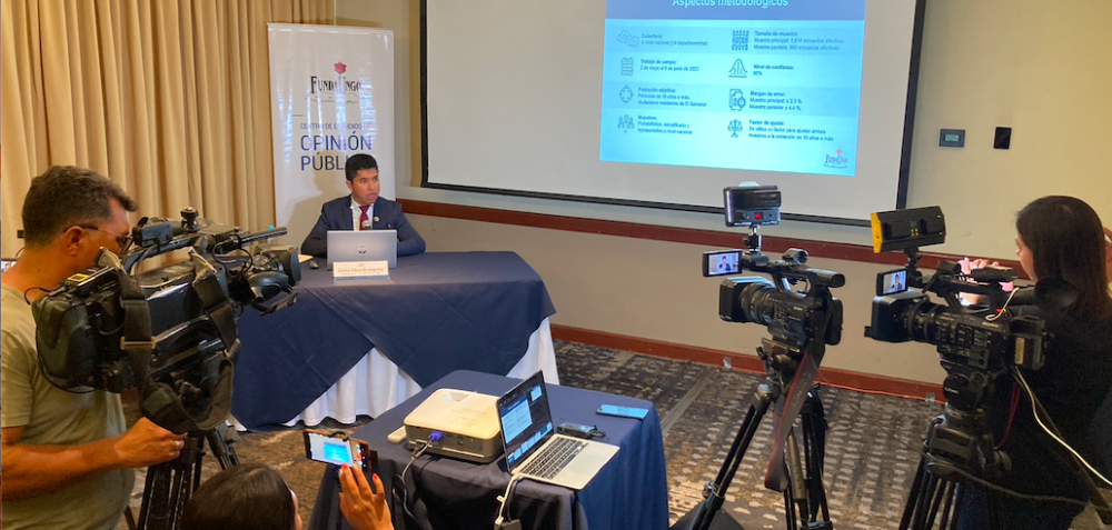 La encuesta fue realizada entre el 2 de mayo y el 9 de junio de 2023 a 1,814 salvadoreños y 500 adicionales, presenta un margen de error del 2.3 % hacia arriba o abajo del resultado y 4.4 % para la muestra paralela.