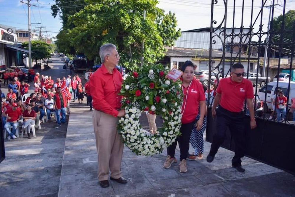 Luego de sus discursos, los integrantes del FMLN colocaron ofrendas florales en el mausoleo en donde descansan los restos del dirigente.