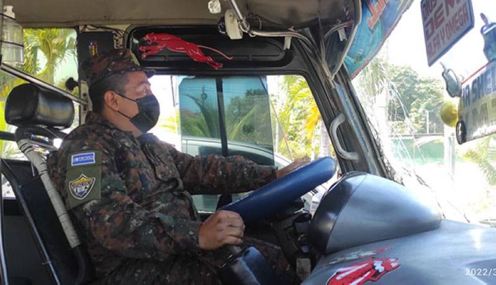 Militares de la Fuerza Armada de El Salvador (FAES) se tomaron ayer los microbuses y buses de la ruta 42 y 152, línea de transporte público que el sábado (12/03/2022) fue sacada de circulación por supuestamente infringir la ley al aumentar la tarifa del pasaje.