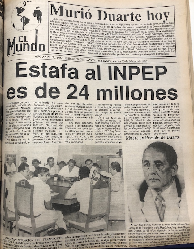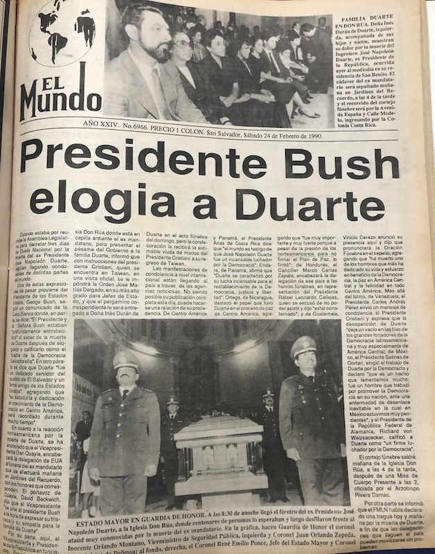El 23 de febrero de 1990, El Salvador se enteraba del fallecimiento de José Napoleón Duarte Fuentes, uno de los personajes que estuvieron en la vida política salvadoreña por casi tres décadas y que fue especial protagonista en la tumultuosa década de los 80, en plena guerra civil.