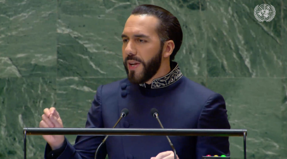 "En El Salvador no encarcelamos a nuestra oposición, no censuramos opiniones, no confiscamos bienes de quienes piensan diferente, no arrestamos a las personas por expresar sus ideas. En El Salvador tu libertad de expresión así como tu propiedad privada siempre estarán protegidas. En El Salvador priorizamos de los ciudadanos honestos sobre la comodidad de los criminales. Algunos dicen que hemos encarcelado miles pero en la realidad hemos liberado a millones", fueron las palabras del presidente Bukele sobre la situación de El Salvador ante la Asamblea General de las Naciones Unidas.