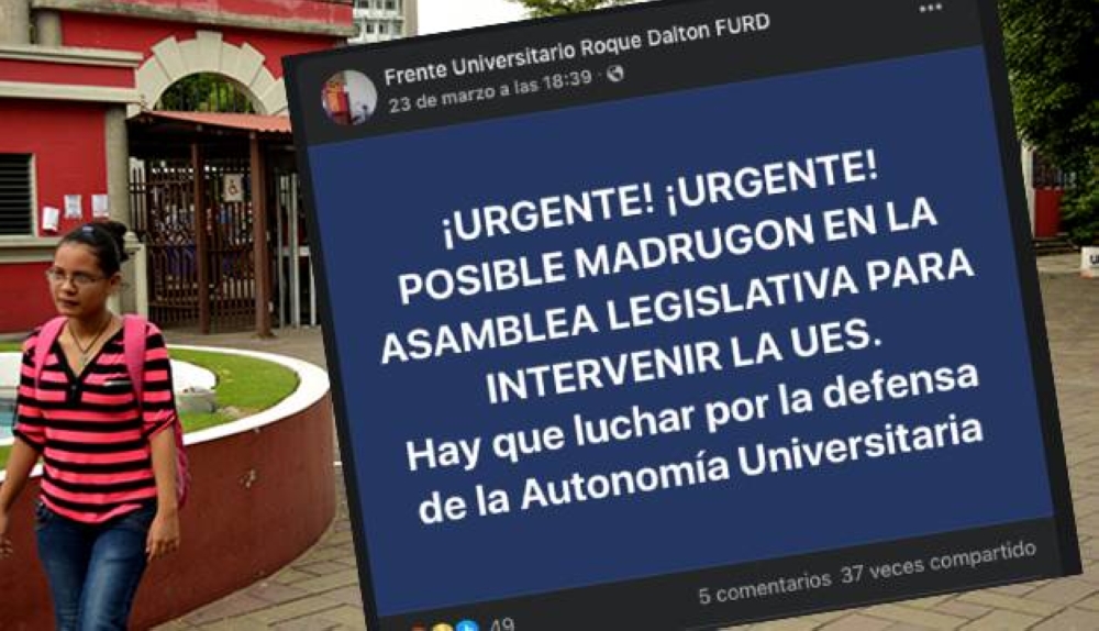 Desde la noche del 23 de marzo, cuentas de Facebook de sindicalistas de la Universidad y del Frente Universitario Roque Dalton (FURD) denunciaron un posible "madrugón" de la Asamblea Legislativa para reformar la Ley Orgánica de la UES.