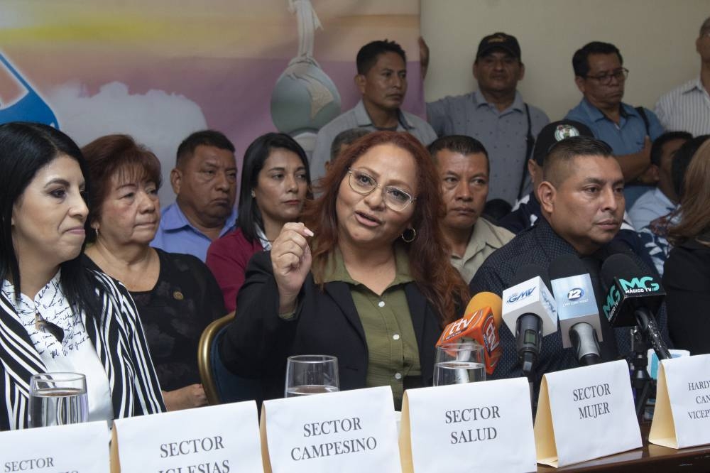 Stanley Quinteros, miembro de la Alianza El Salvador en Paz y representante del sector sindical, presentó a Hardy García como su propuesta a candidata a la vicepresidencia de la república para los partidos políticos salvadoreños.