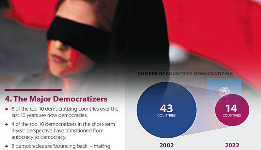 De acuerdo al estudio, el 25 % del Producto Interno Bruto (PIB) global fue generado por las autocracias cerradas y el 21 % por autocracias electorales.